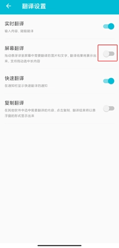 3、于翻译设置页面,点击屏幕翻译按钮。