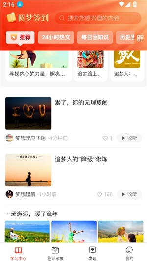 圆梦签到是一款集在线阅读健康养生资讯与早晚安海报分享功能于一体的应用程序。在这款应用中,用户能够通过签到打卡获取用户积分,凭借这些积分来解锁名片功能的使用权限,还可以兑换各类奖励商品。此外,用户在分享资讯、早晚安海报时,通过嵌入个人二维码的形式,能够收获好友人脉,从而达成自我阅读学习、分享拓展人脉的双重目的。