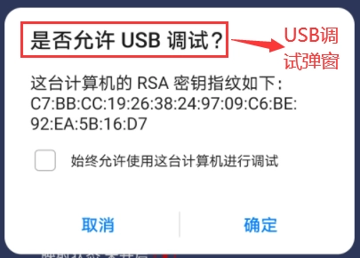 情况二:使用的是数据线,并且所有权限均已开启,然而却没有出现调试请求弹窗?