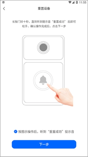 4、最后按照提示重置设备,完成操作后点击下一步,找到设备即表示成功添加。