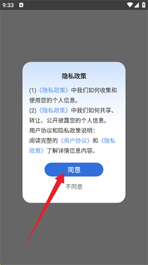 2、打开软件后,第一步需同意用户协议。
