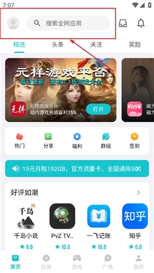 2. 在首页,能够通过一键操作,搜索到所需的应用游戏。