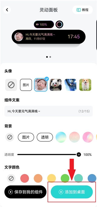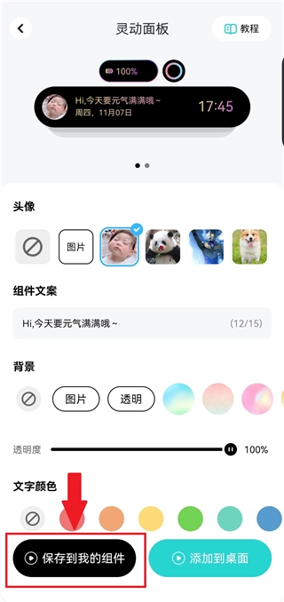 3、能够对心仪的组件进行背景与文字的调整。