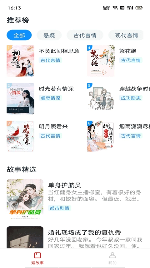 2. 也能够借助关键字搜索把短故事查找出来。