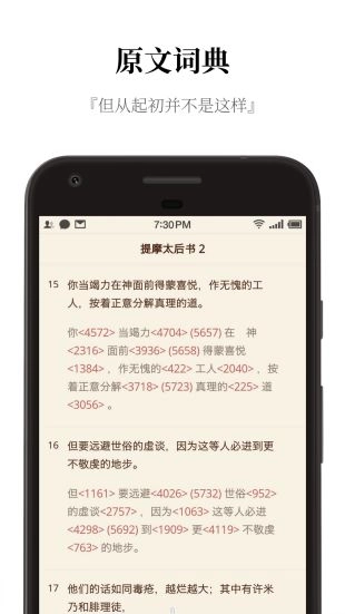 3、原文比对:迅速参照原文词典,体悟圣经本意。