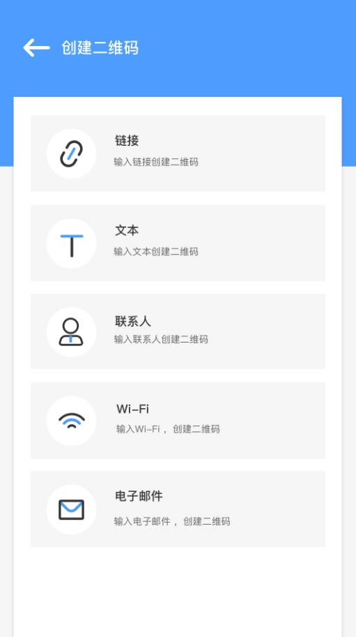 此外,还能够生成具备字、链接、联系人、邮箱、WIFI等功能的二维码文。