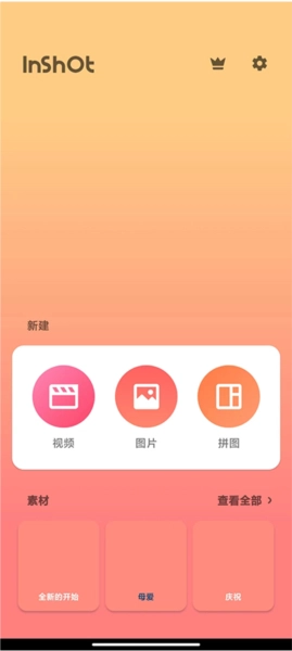 1、第一步,需在手机上打开【inshot】,在此软件里,既能导入照片或视频,也能够进行拼图,还能将多个视频合成为一个视频。