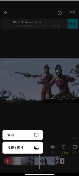 2. 拍完两段视频后,打开inshot,首先进行模糊特效制作。