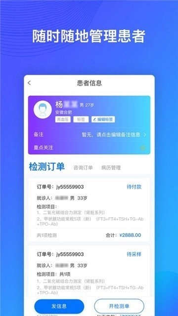 快检康医生是一款专门为医生量身打造的便捷服务平台。借助这个平台,医生能够与患者实现及时沟通,还能迅速将相关数据报告发送给患者。不仅如此,医生在该平台上可以轻松管理报表,使记录更加清晰明了;也能便捷地管理档案,随时掌握患者的最新健康状况。通过接入互联网大数据,医生的工作效率得以大幅提升,工作压力也有所减轻,从而有助于营造良好的医患关系。