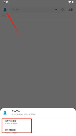 1. 轻点左上角,进入个人中心,在其中找寻同步网易歌单以及QQ音乐歌单的相关选项。