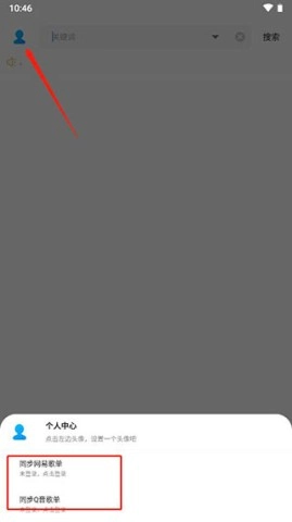 8. 当然,软件支持登录,点击左上角的头像,弹出个人中心,选择同步歌单即可。