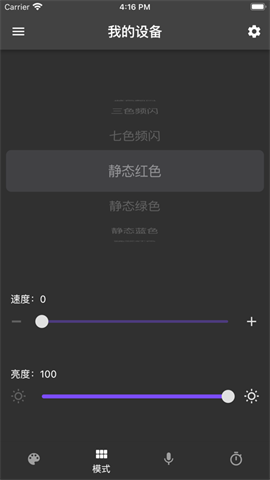 2、在模式页面里,可从三色频闪、七色频闪等一系列模式中进行挑选。