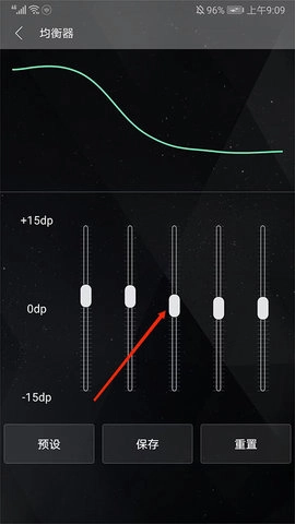 4、来到均衡器界面,拖动“椭圆”按钮就能进行调节了。