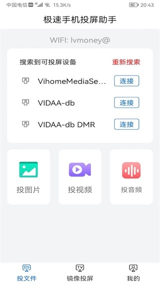 2. 一键就能将手机中的照片和视频投送到电视上播放,同时支持屏幕镜像以及视频云投屏功能。