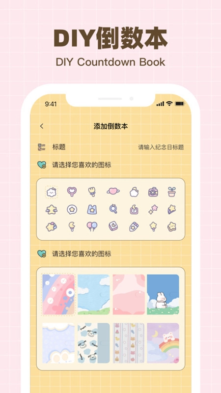 自制倒数本,录入倒数本相关信息,并挑选自己心仪的图标进行设置。