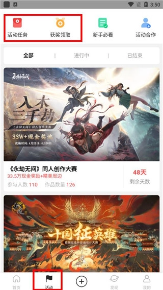 4、轻点活动板块,即可参与平台任务挑战,进而赢取奖励。