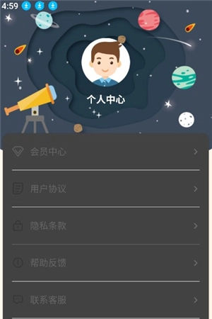 3、最后来到个人界面,在此界面你能够开通会员,还能查阅隐私条款以及用户协议。
