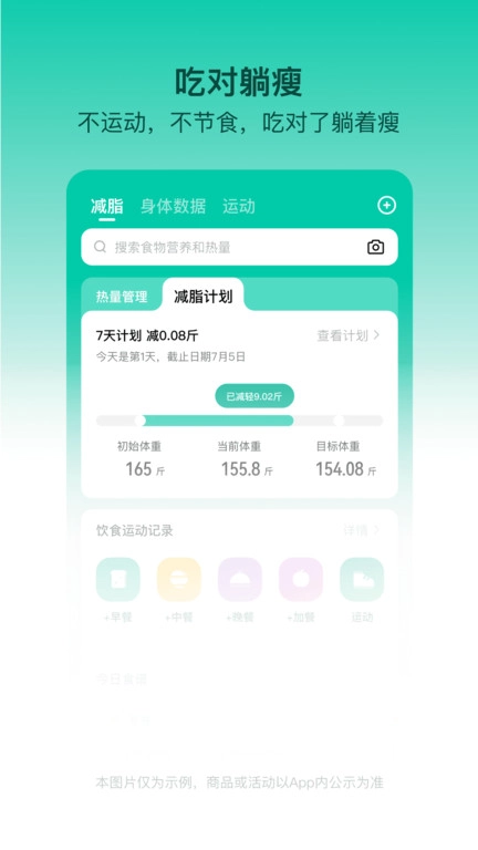 1、依据科学的减肥方式,给出专业的减肥规划,助力用户在维持健康的前提下实现高效减肥。