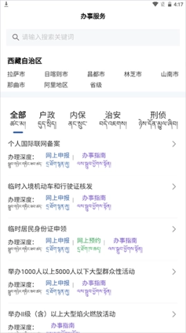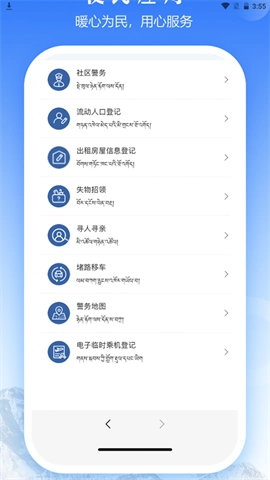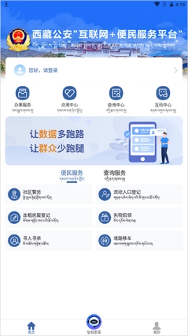 西藏公安政务服务这款手机应用,堪称西藏自治区居民的得力助手。设想一下,在这片美丽又神秘的高原地区,无论是出租房屋登记、流动人口登记,亦或是交通服务等诸多事务,都能借助手机便捷完成,大大减少了麻烦。特别值得一说的是,该应用不仅支持汉语,还专门增添了藏语功能,切实考虑到了每一位用户的需求。