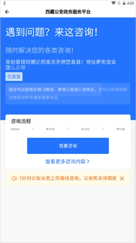 在使用体验方面,西藏公安政务服务的表现堪称惊艳!其操作界面极为简洁直观,各类必备功能清晰呈现,用户只需轻松点击几下,就能顺利完成各类办事流程。不仅如此,这款应用内还提供了细致的办事环节说明,涵盖所需材料、相关机构信息等内容,贴心程度令人忍不住点赞。当用户有需求时,在线服务团队随时待命,为用户答疑解惑,堪称解决“燃眉之急”的得力帮手。