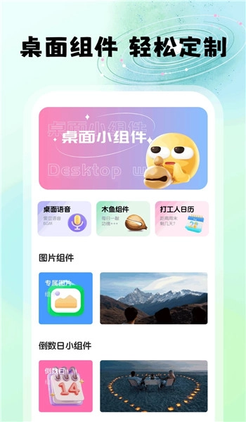 2. 推出多款兼具实用与美观的小组件,像日历、倒数日、木鱼、桌面语音等。