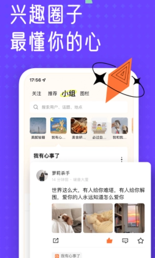 【兴趣圈子】从真实生活出发,挖掘共同话题,让你邂逅与你同频共振之人。无论小众爱好,还是大众娱乐,皆能在此崭露头角。