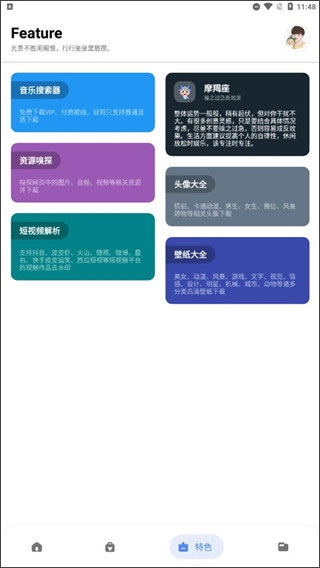 3、这里还有一些特色内容介绍,大家不妨挑选一个自己感兴趣的功能体验一下,这些功能的覆盖范围相当广泛。