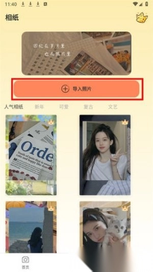 1. 进入重塑相机,点击下方的“相纸”页面。