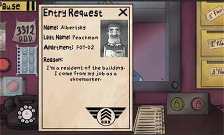 作为大楼的看门人,玩家的角色从普通的看门人变成了保护租户的英雄,玩家必须阻止这些冒名顶替者进入的企图。玩家可以通过查看用户个人资料、检查身份证、确认公寓号码、甚至拨打验证电话来确定进入建筑物的人是人类还是危险生物。