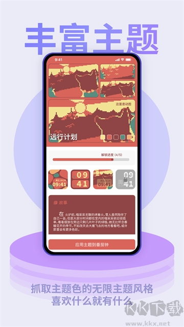 1以下内容精心挑选自色彩采集应用,包含四大色彩采集主题以及与之配套的十六张精美色卡。值得一提的是,每个主题对应的时钟,都配有独特的精美像素插图。