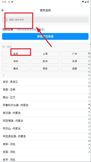 3、既可以输入城市名称,也能够直接选择城市。