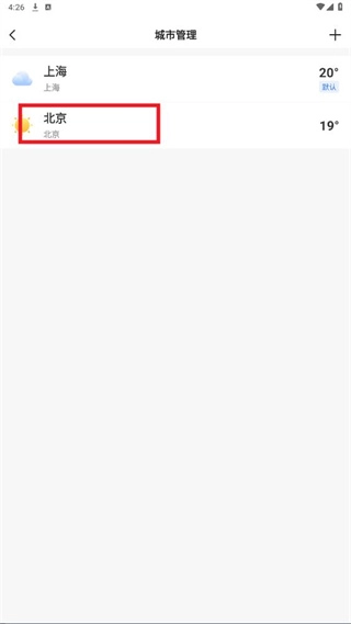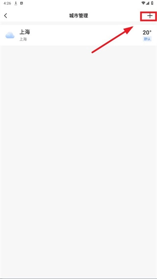 2. 进入城市管理页面,点击右上角的“+”。
