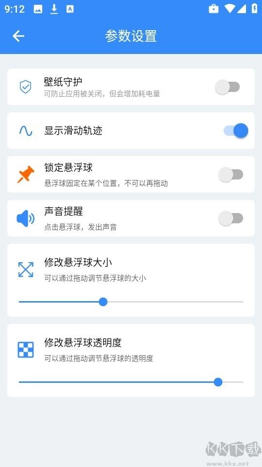 7、也能够对悬浮球的大小和透明度进行自定义修改。