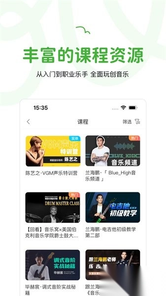 2. 拥有丰富多样的课程资源,无论是入门所需的基本功,还是大师级别的音乐演出技巧,皆能一手掌握。