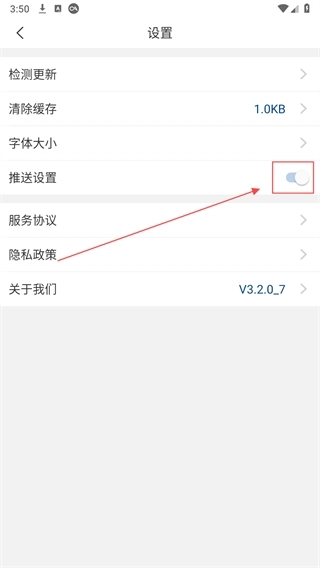 4、轻点推送设置后面的开关,就能完成设置。