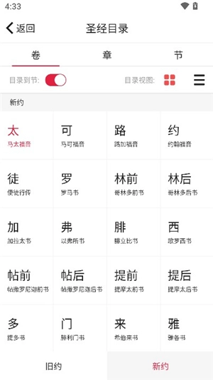 2. 轻点“圣经目录”,于此处挑选想要阅读的章节。