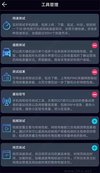 6、下面要讲的是基站信息查看。无需root权限,就能查看基站信息,其中涵盖SIM卡信息、小区信息以及小区信号质量等。借助这些信息,可找出最佳信道,并强制锁定该信道,从而使手机信号增强、网速加快。当然,这一操作若要实现更多功能,就需要专业工具以及root权限来进行选择。目前共有6款工具可供使用,每款工具的功能都很实用。对于普通用户而言,使用网速测试和视频测试功能就已足够。