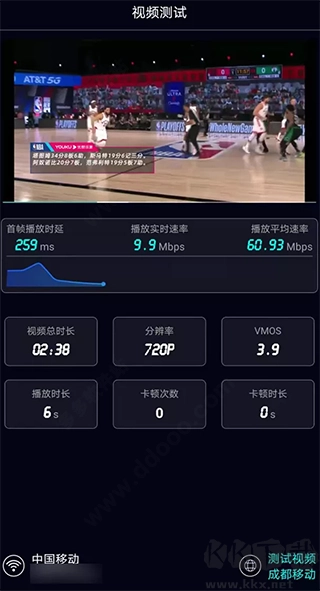 9、在视频测试功能里,可选择从优酷、搜狐、腾讯以及爱奇艺播放视频,并能测试出视频延迟卡顿的次数等。