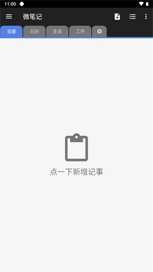 2、首页首先呈现了“全部”“日历”“生活”“工作”这几个常见标签。此外,你还能够在设置里添加新标签,如此既能方便区分不同内容,又有利于进行管理。
