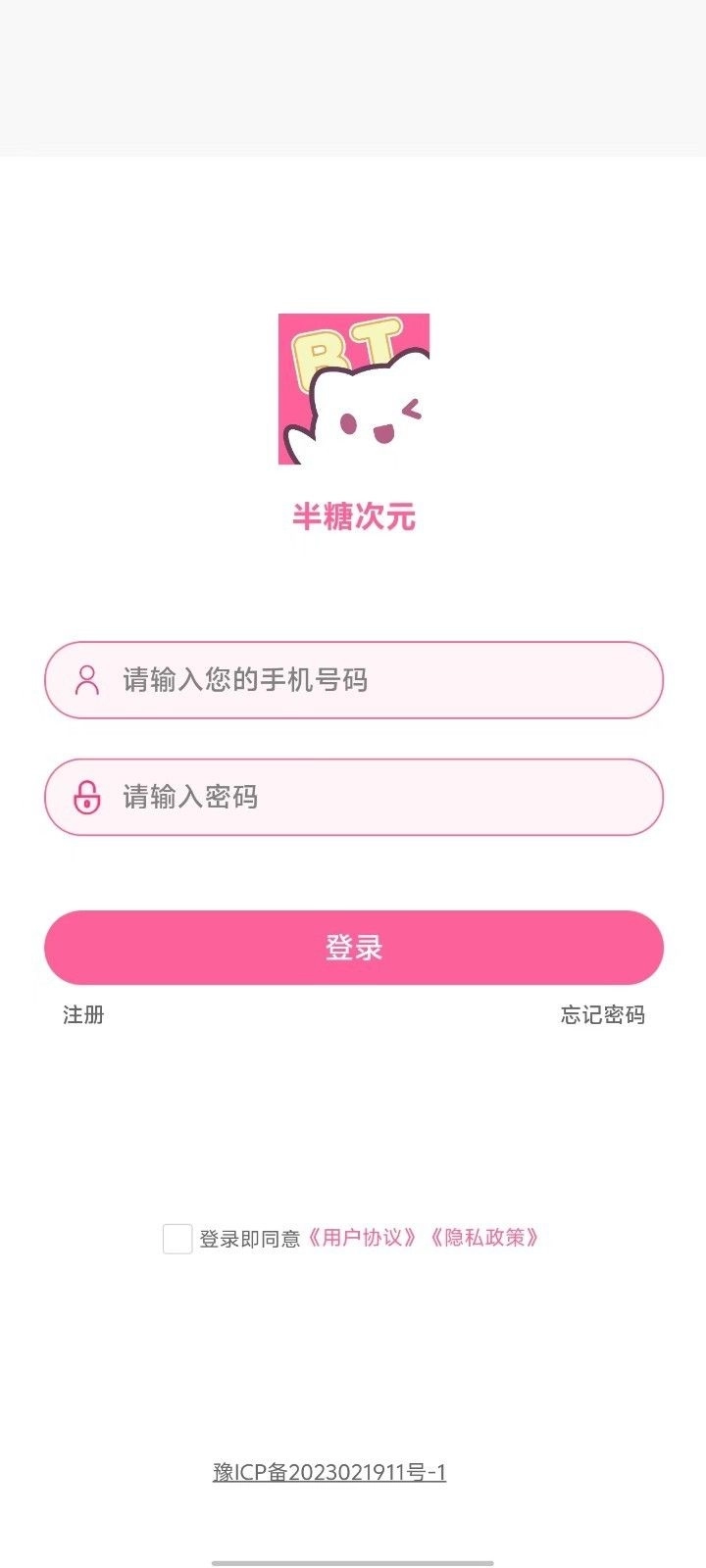 1. 开启半糖次元手机版本,轻点“注册”按键,从而进入注册界面。