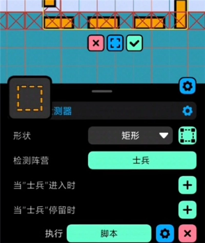 3、炮塔的底座为地块,跟踪主角的炮塔呈圆距形态,其转速设定为零。