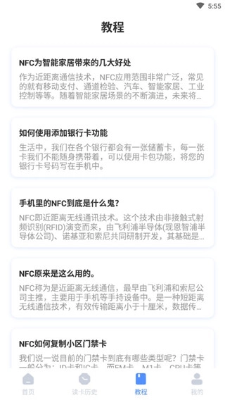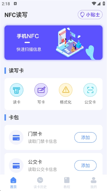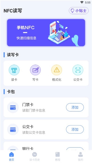 NFC工具是一款用于NFC读、写卡的工具。借助它,能把支持NFC的手机或其他电子设备模拟成借记卡、公交卡、门禁卡等IC卡来使用。该工具会先判断手机是否具备NFC功能,若支持,便可进行读取与写入操作,像常见的门禁卡、电梯卡、停车卡等都适用。它会把相应IC卡内的信息凭证封装成数据包,存储在支持NFC的外部设备中。