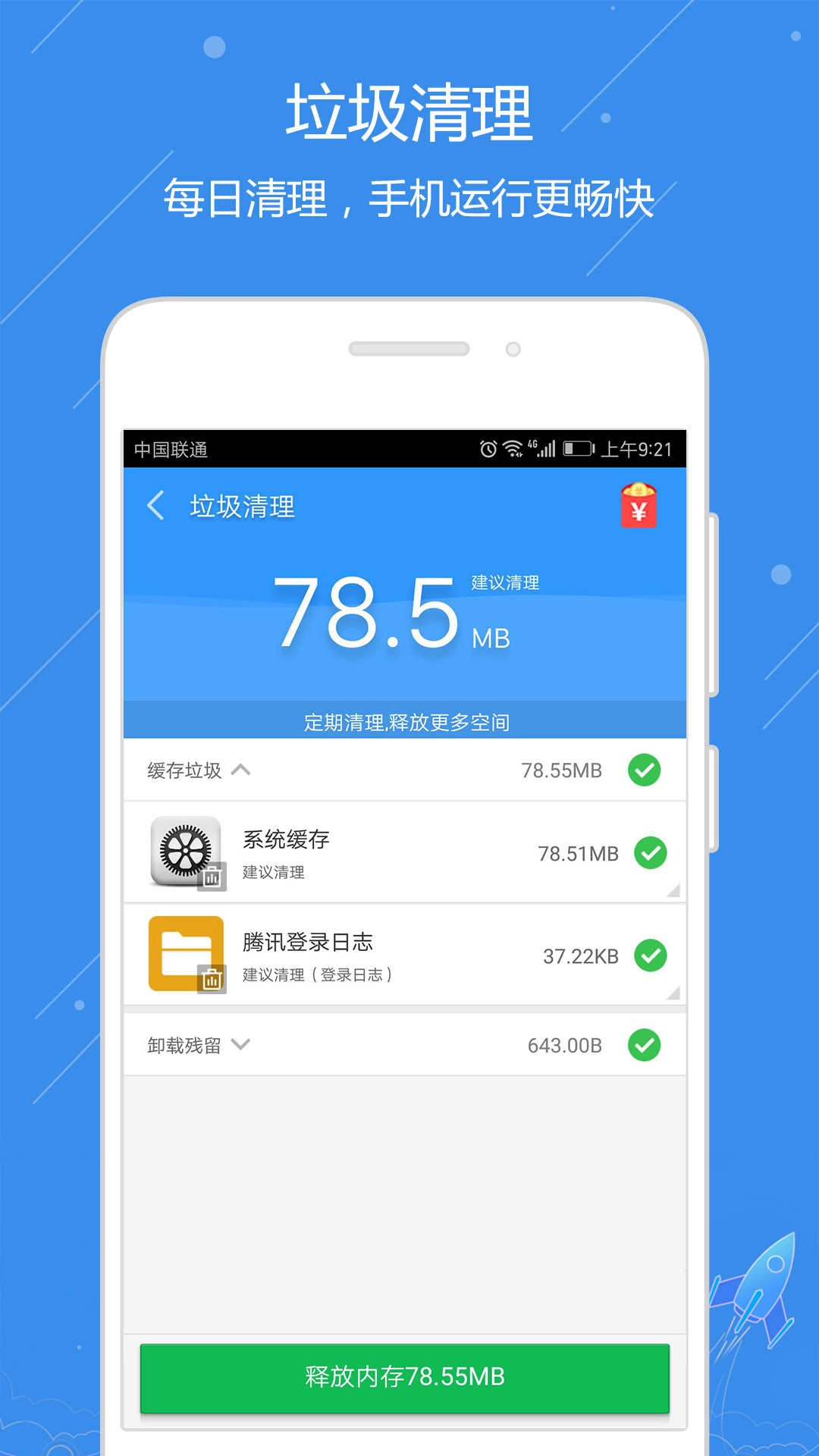 【清理加速】一键点击,迅速加速,轻松解决卡顿缓慢问题;深度扫描清理,全面释放设备空间。