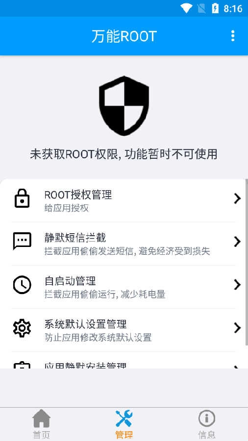 万能ROOT权限获取,这是一款便捷高效的root权限获取工具。借助简洁的操作流程,用户能够获取至高无上的管理员权限,进而解锁手机的高级功能,尽情畅享更多个性化定制功能,还能安装那些原本不兼容的应用程序。