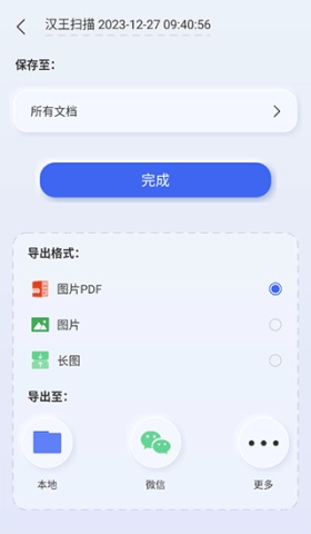 1、生成高清电子件,支持拍照或相册导入,能自动裁剪和校正文档,轻松生成清晰的扫描件。