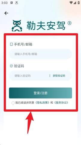 2. 输入手机号或者邮箱,填写验证码,同时勾选同意协议,接着点击“登录/注册”即可快速进入系统。