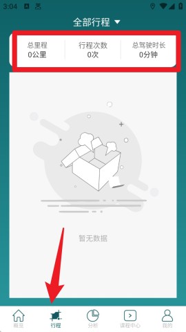 4、切换至底部导航的“行程”页面,仔细查看累计驾驶里程、次数以及总时长等行程数据。