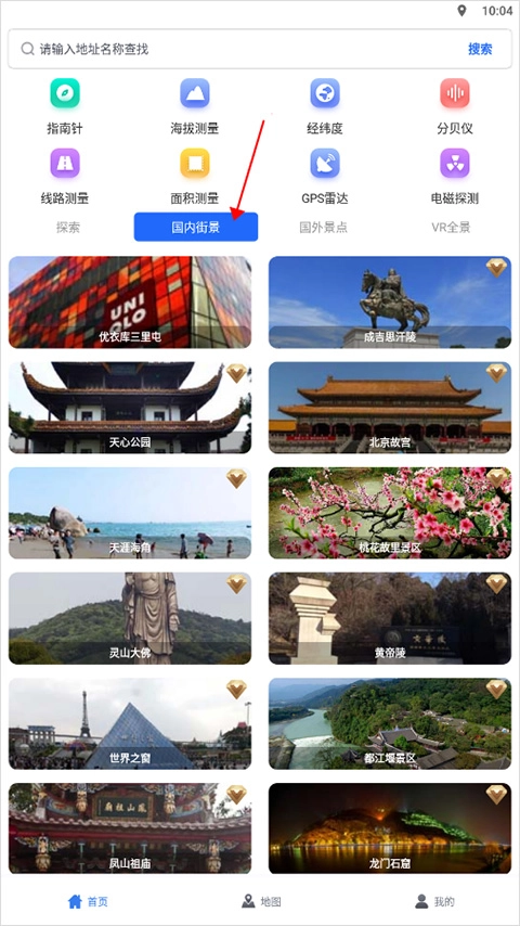 1、用户进入软件首页后,点击【国内街景】,即可选择景点进行观看。