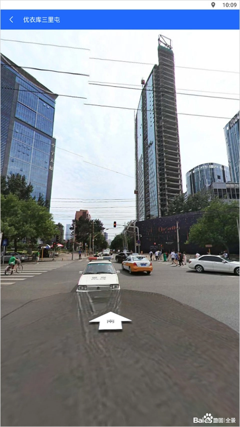 2、在观看街景时,用户除了能够借助向导箭头来移动观看,还能通过底部左下角的二维地图(即下图红色箭头所指区域)实现精准观看。