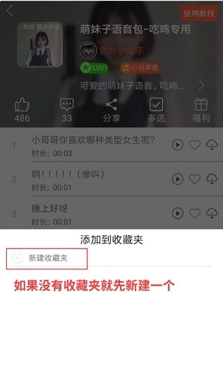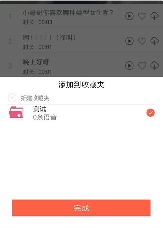 1、从各类语音包里挑选所需语音,点击爱心予以收藏。